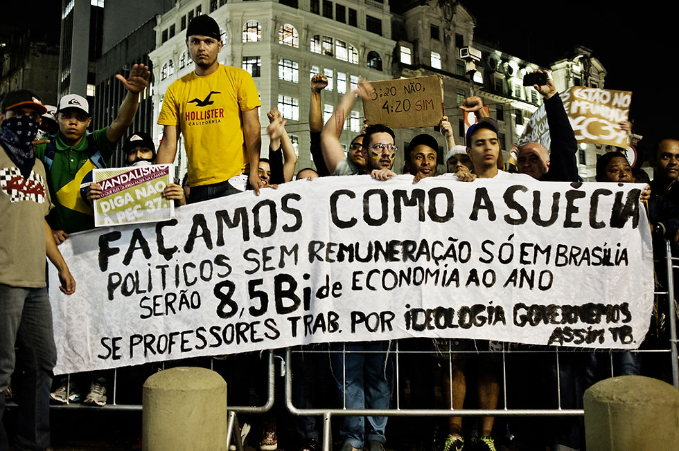 Não se sabe ao certo mas por algum motivo uma onda de insatisfação inundou as ruas das maiores cidades brasileiras. Em São Paulo cerca de meio milhão de pessoas chegou a ir às ruas pedindo a revogação do aumento da tarifa do transpoerte público. Tudo começou quando protestos por um transporte de qualidade e gratuito foram reprimidos violentamente pela polícia militar que não estava preparada para agir em manifestações grandes. No dia 13 de Junho foi o estopim. A polícia não só agrediu os manifestantes que marchavam pacificamente do centro até a Avenida Consolação mas também pessoas que paravam para olhar ou simplesmente passava nas proximidades da confusão. Depois da vitória na luta pelo aumento da tarifa do transporte público e impedimento da aprovação de uma Emenda Constitucional que limitaria os poderes de poder judiciário, a onde acalmou, porém ainda existe a cicatriz do descaso do governo brasileiro na pele de cada cidadão.